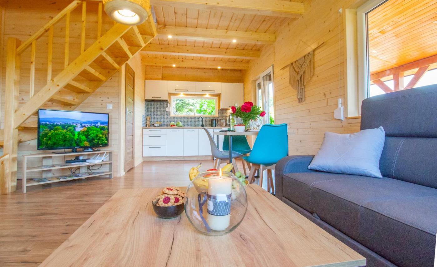 Dom z 2 sypialniami. This holiday home consists of 1 living room, 2 separate bedrooms and 1 bathroom with a shower and a hairdryer. Guests will find a stovetop, a refrigerator, kitchenware and a microwave in the well-equipped kitchenette. The holiday home also offers a barbecue. Featuring a terrace with garden views, this holiday home also provides a coffee machine and a flat-screen TV with satellite channels. The unit offers 4 beds. Dom wakacyjny - 6 osobowy. Powierzchnia pokoju ok.: 65 mkw.